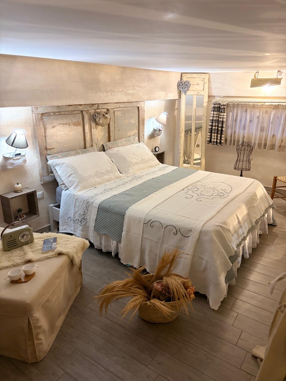 La Camera Shabby è pensata per chi ama gli ambienti caldi, curati nei dettagli e dallo stile romantico. Colori delicati, arredi shabby chic e un’atmosfera accogliente rendono questa camera il luogo ideale per una pausa di relax, in coppia o per un soggiorno rigenerante. Ogni elemento è scelto con cura per offrirti comfort, tranquillità e la sensazione di essere davvero in vacanza.